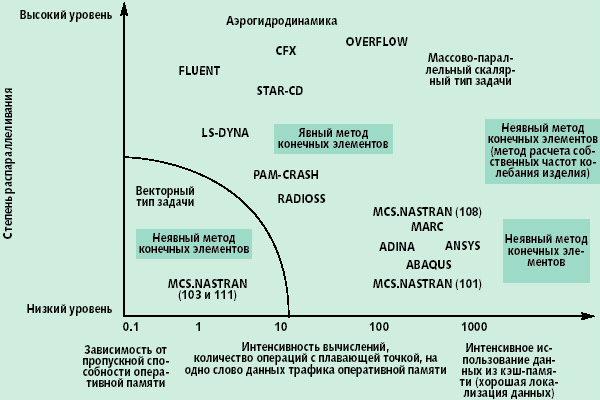 Рис. 5. Пакеты инженерных расчетов и их особенности распараллеливания и локализуемости в кэш-памяти