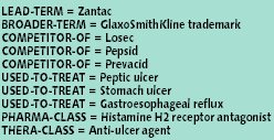 | Рис. 2. Взаимосвязи понятий, использующие Zantac в качестве основного термина при поиске в пределах GSK Thesaurus |