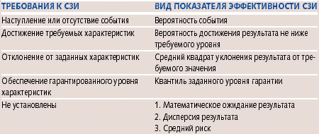 Таблица 1. Возможные показатели эффективности СЗИ