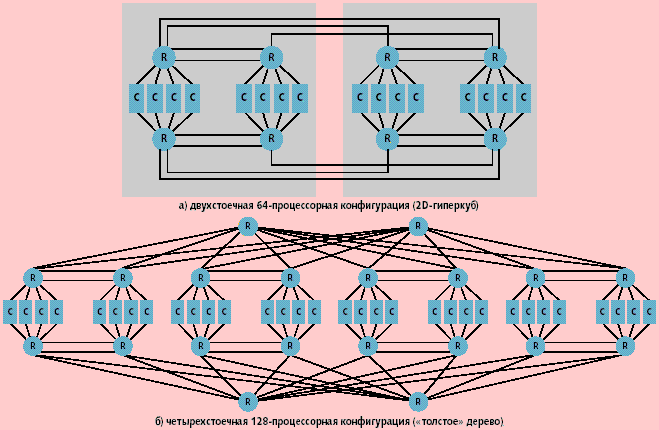Рис. 6. Многостоечные конфигурации Altix 3700 с двухсторонней топологией