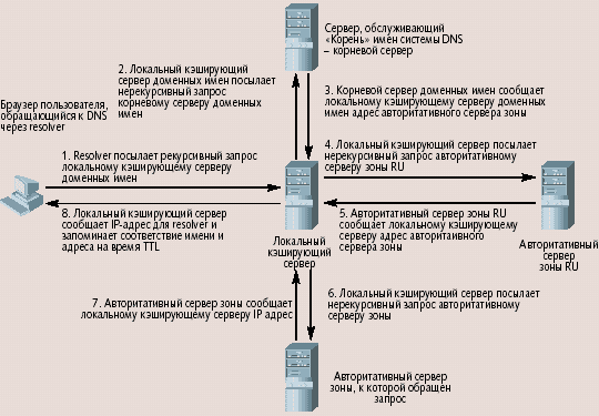 Рис. 1. Схема получения IP-адреса по известному доменному имени в системе DNS
