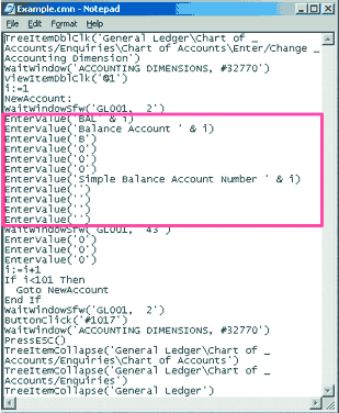 Параллельно работе над плеером и рекордером решался вопрос о требованиях к скриптам. Было решено, что скрипты должны представлять собой набор командных файлов, каждый из которых содержит определенную последовательность команд, аналогичную приведенной на рис. 1. Каждый командный файл должен выполнять некоторую логически завершенную последовательность действий (ввод плана счетов, ввод некоторого количества заказов на продажу и т.п.).