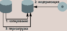 Наиболее ярко самоконфигурирование проявляется при активной адаптации системы (динамической реконфигурации). Примером самоконфигурирования при работе с операционной системой Solaris 9 может служить «функция» LiveUpdate, модернизация, осуществляемая на работающей операционной системе (рис. 2).