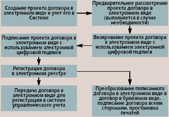 | Рис. 4. Схематическое представление процедуры безбумажного согласования договора |