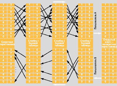 Процесс логического вывода для формирования открытых ключей. В результате выполнения n процедур логического вывода будет образована таблица несекретной перестановки, используемая в процессе шифрования для открытой передачи ключа