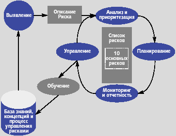 Процесс управления каждым риском проходит через все эти этапы, как минимум, по одному разу; для многих рисков этот цикл повторяется. Каждый риск обладает собственными временными характеристиками, поэтому на любом из перечисленных этапов в каждый момент времени может находиться более одного риска.