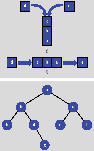 | Рис. 2.a) стек, б) очередь Рис. 3. Бинарное дерево |