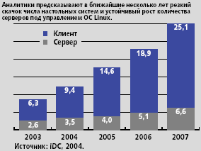 | Число клиентских и серверных Linux-систем в мировом масштабе (млн. штук) |