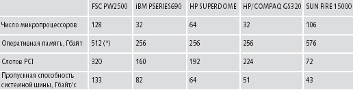 Характеристики конфигураций некоторых серверов с общим полем памяти