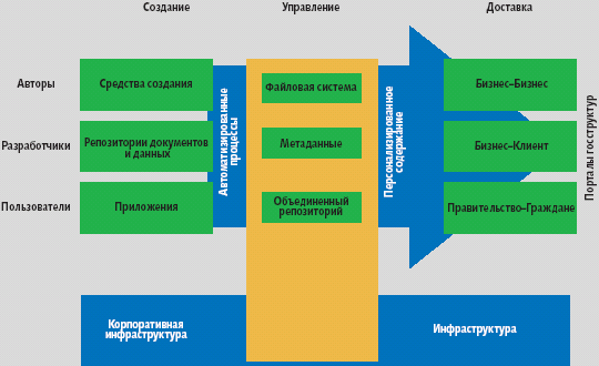 - доставка и персонализация - процесс оптимизации содержания в соответствии с контекстом, размещением, прикладными задачами, языком и текущими требованиями его потенциального получателя.