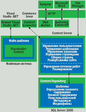 Централизованный подход к созданию, организации и публикации корпоративного Web-содержания реализован в системе Microsoft Content Management Server (CMS) 2002. Сервер, реализованный на платформе .NET, использует все возможности этой архитектуры и предоставляет системным администраторам и разработчикам средства построения Web-сайтов с использованием технологий ASP.NET и Web-сервисов. CMS позволяет включить управление Web-содержанием в среду совместной работы путем интеграции с инструментарием Visual Studio .NET и серверами Microsoft Commerce Server и SharePoint Portal Server. Бизнес-пользователи, не имеющие квалификации в Web-дизайне и разработке, могут использовать CMS для создания и публикации Web-содержания с помощью браузера или непосредственно из Word.