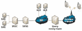 Для организации службы SMS (рис. 1) создается центр обработки сообщений (Short Message Service Center, SMSC). Он получает сообщения от отправителя сообщений (Short Message Entity, SME), в качестве которого может выступать сервер или мобильное устройство, и выполняет все функции, связанные с промежуточным хранением сообщений и контролем их доставки мобильным пользователям. Помимо SMSС имеется еще шлюзовое устройство (Short Message Service Gateway, SMSG), обеспечивающее взаимодей?ствие сервера с элементами сетевой инфраструктуры (центр коммутации MSC, реестры собственных и обслуживаемых абонентов HLR и VLR), интерфейс со службами голосовой и электронной почты, а также связь с внешними для данной сети источниками сообщений, например, центрами обработки сообщений других операторов.