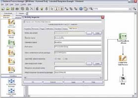 Когда разработчик хочет включить Web-сервис в бизнес-процесс, он начинает с того, что берет его шаблон из палитры, расположенной в левой части экрана, и помещает на диаграмму процесса, находящуюся справа. Далее он конфигурирует сервис, просто устанавливая параметры запроса и то, как будет сохраняться ответ. Документ запроса — это данные, которые будут поступать с предыдущего этапа процесса, их называют «входным пакетом». Ответ Web-сервиса представляет собой XML-документ, который будет прикреплен к пакету, направляемому в следующую задачу (в нашем примере — подтверждение запроса на закупку товара). Таким образом, Documentum BPM позволяет быстро разрабатывать интегрированные деловые процессы без программирования.