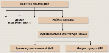 Опыт функционального управления накоплен в библиотеке Business Information Systems Management Library (BISML). Он может быть разделен на несколько уровней — стратегический, тактический и операционный. На стратегическом уровне основное заключается в установлении соответствия между информационными функциями системы и ее контентом, что сводится к атрибуции задач на поле информационной политики, определению контента информационных функций и ИТ-поддержки.