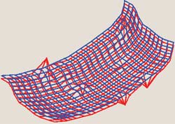 При использовании МГУА предполагается, что эту зависимость можно определить с помощью полинома Колмогорова — Габора [4]. Известно, что при увеличении его степени точность приближения функции возрастает, а потом убывает. В момент, когда точность максимальна, процесс усложнения полинома заканчивается. Число экспериментальных точек может быть значительно меньшим, чем число членов полинома, что является положительным моментом: медики редко располагают большим количеством экспериментальных данных, позволяющих достаточно точно отобразить процесс. На рис. 2 приводится примерное изображение функции, построенной с помощью МГУА (функция трех аргументов).