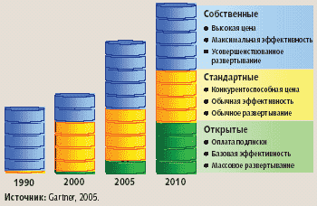 | Рис. 9. Эволюция программных платформ: собственные, стандартные и открытые |