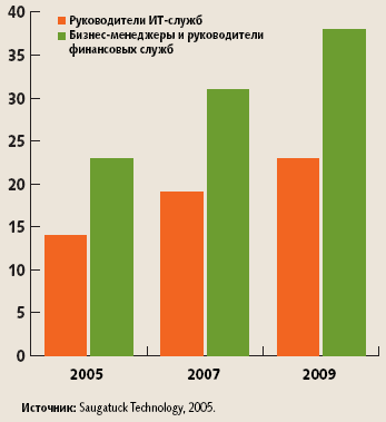 Процент затрат на ИТ-инфраструктуру в 2005-2009 годах, которые будут реализованы по принципу оплаты за предоставленные услуги