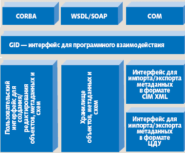 GID описывает четыре программных интерфейса, основанных на индустриальных стандартах Object Management Group и OPC Foundation и дополненных средствами решения специфических задач электроэнергетики.