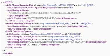 | Рис. 2. Фрагмент XML-документа c данными CIM-модели |
