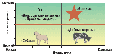 Бостонская матрица, предложенная консалтинговой компанией Boston Consulting Group, стала общепринятым инструментом управления портфелем продуктов. Продукты наносятся на диаграмму в соответствии с ростом рынка и рыночной долей.