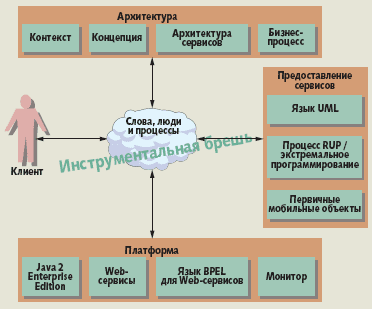 Последний продукт IBM с длинным названием IBM WebSphere Business Integration Server Foundation (сервер интеграции бизнес-процессов) позволяет архитекторам определить сервисно-ориентированную архитектуру, которая дает возможность приложениям CICS (customer information control system) на мэйнфрейме взаимодействовать с Web-сервисами на базе SOAP. Платформа BEA Weblogic Platform предлагает подобные же средства, обеспечивая единый «контейнер», в котором клиенты могут управлять сервисами. Компании BEA и IBM наряду с Microsoft, Sun, Oracle, SAP, другими поставщиками сервисных архитектур [8] и группами аналитиков [9] разрабатывают более стандартизированное представление SOA. Они утверждают, что через несколько лет WSDL станет фактическим стандартом описания сервисов, а определение существующих систем с помощью WSDL поможет предприятиям придать гибкость своим вычислительным средам.