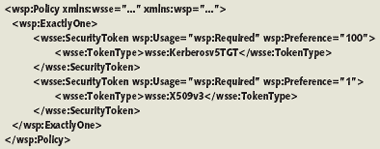 Код, представленный на рис. 5, взят непосредственно из проекта спецификации. Данный пример показывает, как сервис определяет разные формы дескрипторов безопасности, которые он будет принимать при идентификации.