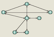 В сети могут фигурировать персоны с большим количеством прямых связей (например, А на рис. 1). Очевидно, что они играют важную роль в структуре взаимоотношений данной группы, часто демонстрируют большую продуктивность работы и большую удовлетворенность ею, чем участники сети с меньшим числом прямых связей. Эти персоны выполняют функции основных посредников между людьми, соединенными косвенными, непрямыми связями. Такое посредничество может оказывать как положительное, так и отрицательное влияние на взаимоотношения в социальной сети, помогая или, наоборот, препятствуя распространению информации либо налаживанию отношений между различными подгруппами сети.