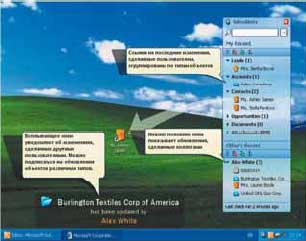 SalesAlerts дополняет SalesFavourites возможностью отслеживать обновления, сделанные не только самим пользователем, но и его коллегами. Более того, здесь, примерно как в MSN или Outlook, появляются уведомления о новых сообщениях и можно подписаться на оповещения об определенных событиях, например об изменении параметров сделки, над которой работает проектная команда. Достаточно щелкнуть мышкой на уведомлении, чтобы открыть и посмотреть форму с данными сделки.