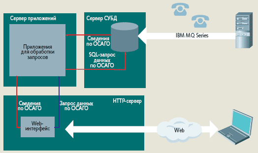 В АИС РСА возможно также применение технологии Web-сервисов, которую поддерживает WebSphere, для обеспечения мгновенного взаимодействия и передачи небольших объемов информации по запросу из систем страховых компаний в АИС РСА и наоборот. С учетом значительной распределенности источников данных, взаимодействие АИС РСА с корпоративными информационными системами страховых компаний (КИС СК) организовано на базе Web с использованием защищенных каналов связи. Доступ пользователей к функциональности системы реализован также с помощью Web-технологий — в качестве интерфейса используется набор HTML-страниц, который просматривается с помощью браузера. Пользователями системы будут как сотрудники РСА, так и специалисты страховых компаний. Но если в задачи первых входит только получение нужной информации, то вторые должны эту информацию предоставлять, используя механизмы интеграции КИС СК и АИС РСА. Опора на стандарт XML позволяет привести к общему знаменателю форматы данных, передаваемых из различных компаний.