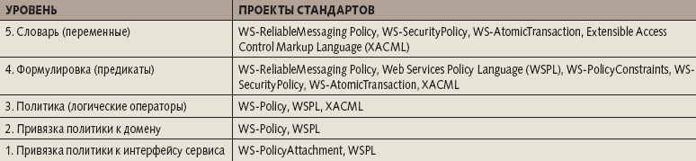 Проекты стандартов описания политик, упорядоченные по функциональным уровням