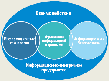 В основу информационно-центричного предприятия должна быть положена единая информационная инфраструктура, которая позволяет принимать принципиально важные решения на уровне предприятия в целом, преодолевая внутриведомственные барьеры. Эта инфраструктура может стать «общим знаменателем» для конвергенции управления информацией, с информационными технологиями и средствами информационной безопасности, позволяя каждому из направлений оставаться ответственным за себя, но работать совместно в едином бизнес-контексте.