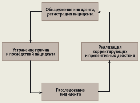 Необходимо понимать, что управление инцидентами не предупреждает нанесение ущерба компании (как правило, компания уже понесла ущерб, связанный с инцидентом), однако расследование инцидента и своевременное внедрение превентивных и корректирующих мер снижает вероятность его повторения (и, следовательно, вероятность повторения нанесения ущерба). Отметим также, что статистика инцидентов информационной безопасности представляет особую ценность для компании как показатель эффективности функционирования системы управления информационной безопасностью. Статистику инцидентов следует регулярно анализировать в рамках аудита системы управления информационной безопасностью.