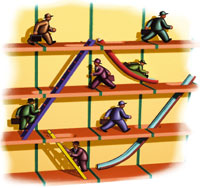 В той или иной степени на всем протяжении развития средств вычислительной техники применялись все способы увеличения производительности, сформулированные еще в начале 60-х годов (повышение тактовой частоты и параллелизма, программная настраиваемость структуры для аппаратной реализации вычислений), однако в их акцентированном применении прослеживается этапность, обусловленная, с одной стороны, степенью развития элементной базы, а с другой — сохранением удобства и продуктивности программирования [1]. Освоив некоторый метод — а точнее, модель создания программ, большинство программистов склонны ее применять и совершенствовать с целью увеличения производительности труда и скорости выполнения создаваемых программ и не стремятся переходить на другую модель программирования. Это обстоятельство обусловливает консерватизм развития архитектур в ущерб производительности, достигаемой на используемой элементной базе. Однако физические свойства элементной базы определяют возможности создаваемых вычислительных средств и диктуют архитектурные решения, требующие смены модели программирования.