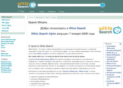 Поисковый сервис Search Wikia, созданный основателем Wikipedia Джимми Уэйлсом, начал работу в режиме альфа-тестирования. Со временем авторы проекта рассчитывают превратить его в полноценного конкурента Google, однако на сегодня он находится в весьма ранней стадии. Предполагается, что Search Wikia будет развиваться подобно Wikipedia, силами добровольцев, которые сами будут дополнять, редактировать и оптимизировать поисковый индекс. По мнению Уэйлса, пройдет не менее двух лет, прежде чем проекту удастся добиться качества поисковых результатов, соответствующего отраслевым стандартам. Поверх результатов на сайте будет выводиться «мини-статья»— текстовое определение, фотография или внешняя ссылка, определенные в качестве лучшего ответа на конкретный запрос. Пользователи сами смогут указывать качество каждого полученного ими набора результатов, и эти рейтинги будут учитываться при дальнейших поисках. Сейчас можно выполнять поиск только по Web и только на английском языке, далее планируется добавить изображения и новости, а также дополнительные языки.