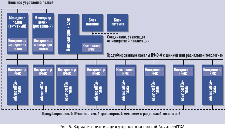 Одна из возможных конфигураций логического управления AdvancedTCA-полкой изображена на рис. 5.