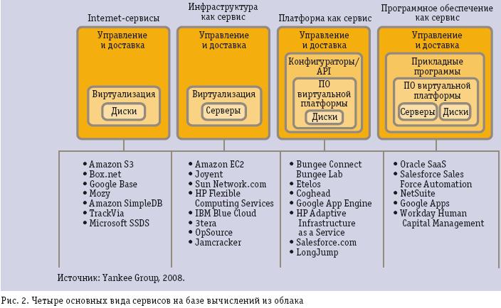Рис. 2. Четыре основных вида сервисов на базе вычислений из облака