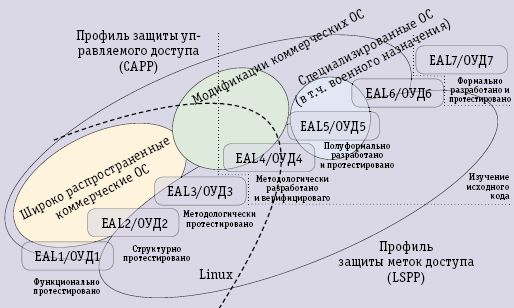 В рамках того или иного профиля защиты операционная система может быть сертифицирована на определенный – от первого до седьмого – оценочный уровень доверия (Evaluation Assurance Level, EAL). Каждый последующий уровень выдвигает более жесткие требования к методам разработки и тестирования операционной системы, управлению конфигурацией, дальнейшей поддержке системы и т.п. Начиная с четвертого уровня требуется частичное предоставление исходного кода. На седьмом уровне необходимо формальное математическое доказательство безопасности системы.