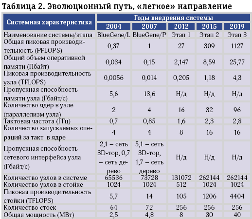 В таблице 2 приведены оценки специалистов Аргонской лаборатории эволюционного развития суперкомпьютеров «легкого» направления. Это направление эксперты DARPA рассматривают как более перспективное.