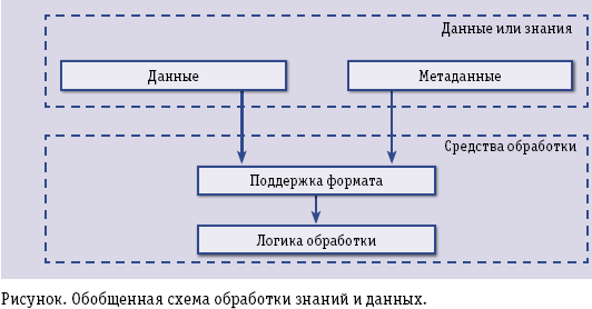 Необходимость формального представления сведений о предметной области возникла еще на заре исследований в области искусственного интеллекта, когда был сформулирован критерий, разграничивающий понятия «данных» и «знаний», согласно которому, знания — это «данные плюс метаданные». Любая обработка знаний осуществляется на основе метаданных, описывающих способы преобразования, вспомогательные закономерности, форматы хранения информации и т. д. Изменение перечисленных компонентов позволяет модифицировать правила обработки информации, не затрагивая сами алгоритмы.