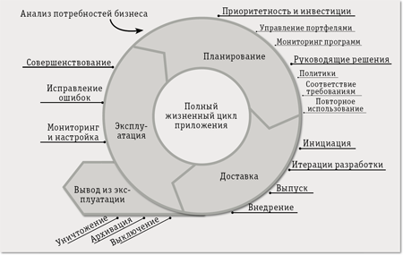 Еще одна важная тенденция, способная оказать решающее влияние на развитие современных ALM-платформ, – все возрастающая необходимость в интеграции этапов разработки и эксплуатации приложения. Хотя мы определили этап эксплуатации как неотъемлемую часть ALM, на деле эксплуатация и разработка в большинстве организаций существуют отдельно. Различия действительно глубоки и имеют как культурно-организационные, так и технологические корни. Разработчики видят свою миссию в создании новых возможностей для бизнеса, и изменения в коде составляют суть их деятельности. Разработчики нацелены на выпуск готового программного релиза к определенному сроку, тестируя его в более простой по сравнению с реальной среде, подчас слабо отражающей фактические условия эксплуатации. Ключевые метрики, определяющие процесс разработки, фокусируются на реализации определенной функциональности, минимизации ошибок и завершении процесса разработки в заданный срок. С другой стороны, миссия операционного персонала – это нормальная работа приложений, обеспечение необходимой им производительности и безопасности, гарантирующих работоспособность бизнеса. Любое развертывание новой функциональности или модернизация существующих решений несет в себе угрозу непредсказуемых изменений в эксплуатационной среде, чреватой серьезными рисками.