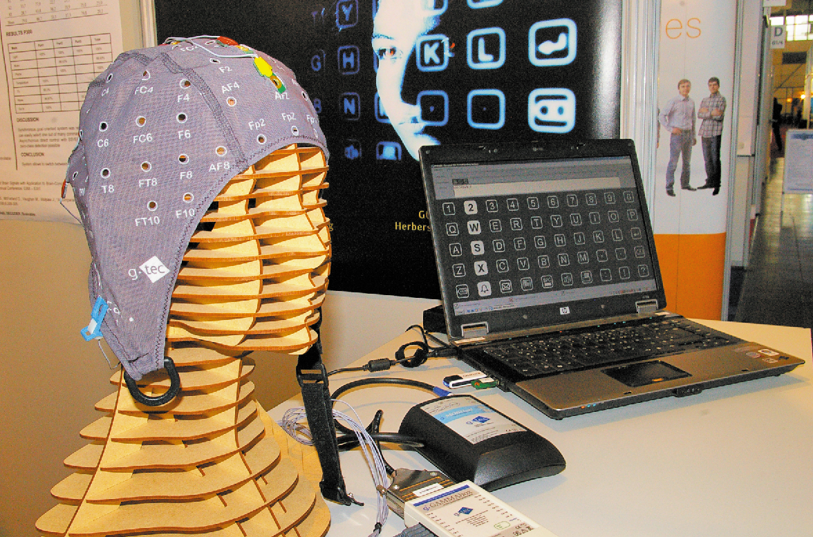 Немецкая компания Guger Technologies продемонстрировала на выставке CeBIT человеко-машинный интерфейс intendiX, позволяющий набирать небольшие тексты, последовательно глядя на буквы на экране компьютера. Эта разработка ориентирована в первую очередь на обездвиженных людей, которые получат возможность писать записки своим близким или общаться, например, в социальных сетях.