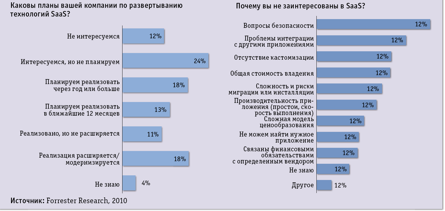 По данным Forrester, модель SaaS находит все большее применение, но ее внедрению препятствуют проблемы безопасности и интеграции.