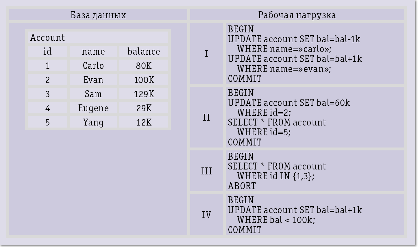 | Рис. 3. Примерные база данных и рабочая нагрузка |