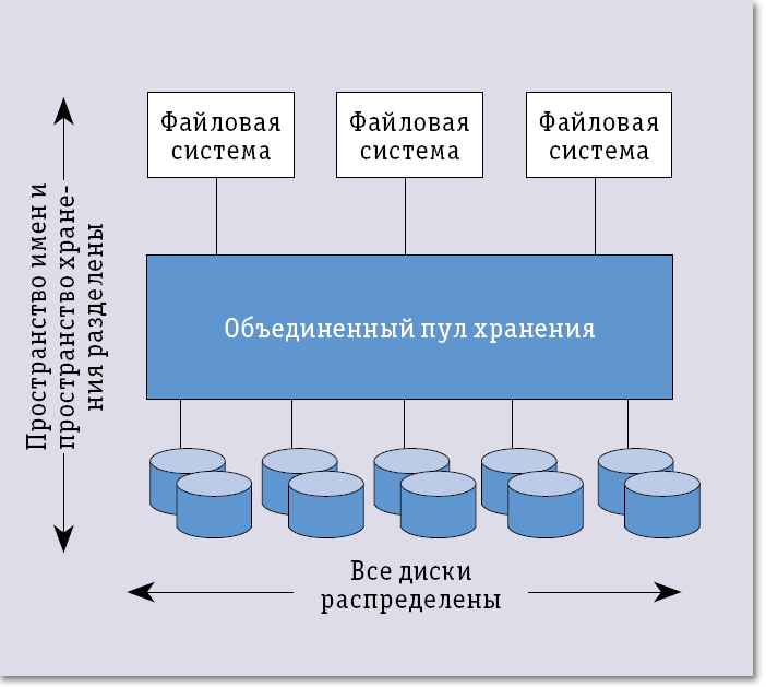 Запредельный объем хранения — не самоцель, Джефф Босвик и Билл Мур, создатели ZFS, ставили перед собой две здравые задачи. Первая — избавиться от необходимости в надежных дисках, чтобы собрать надежную систему из ненадежных компонентов. Вторая — обеспечить простоту неограниченного масштабирования. Босвик и Мур приступили к работе над ZFS в 2000 году, осознав фундаментальное противоречие между ростом размера дисков, удваиваемого каждые 12-18 месяцев, и постоянным количеством ошибок в пересчете на терабайт. Из-за подобного разрыва рано или поздно с неизбежностью возникнет тупиковая ситуация, надежность дисков ограничит предельные объемы хранимых данных, поэтому исходной точкой стало недоверие к железу, и не случайно позже стали говорить, что ZFS любит дешевые диски SATA.