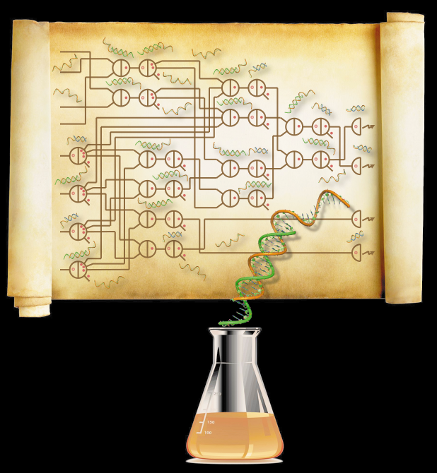 Самую сложную на сегодняшний день биохимическую логическую схему создали ученые Калифорнийского технологического института. Она состоит из 74 молекул ДНК, функционирующих аналогично транзисторам в полупроводниковых схемах.