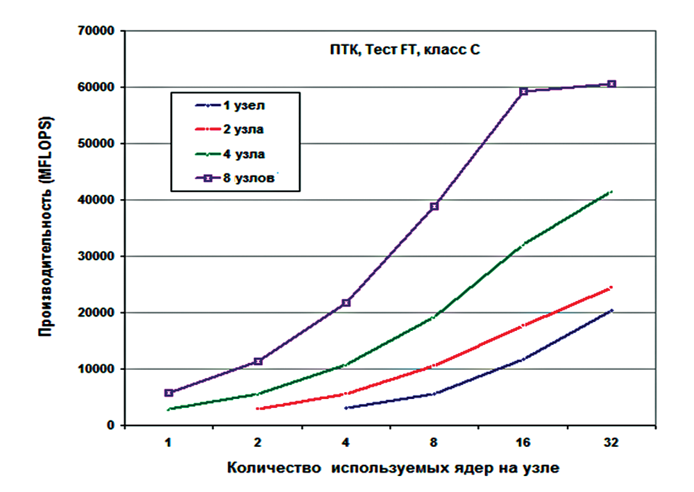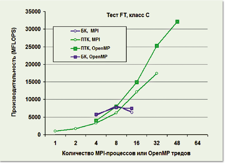 | Рис. 3. Тест FT (NASA npb 3.3.1) – трехмерное преобразование Фурье |