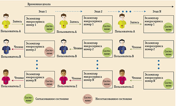 Рис. 4. Шаблон Eventual Consistency. Несогласованность устраняется путем многоэтапной синхронизации реплик |