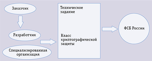 В Положении ПКЗ-2005 подробно описан порядок взаимодействия при разработке, производстве и эксплуатации СКЗИ между заказчиком, разработчиком, специализированной организацией, выполняющей исследования по оценке соответствия СКЗИ требованиям по информационной безопасности ФСБ России, и ФСБ России, оценивающей полноту и корректность проведенных исследований (см. рисунок). Данный порядок во многом подобен другим отечественным или международным системам сертификации в различных областях.