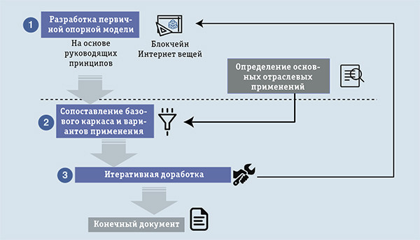 Стандарты «системы систем» разрабатывают с применением методов системной инженерии и обеспечения интероперабельности. Возможен итеративный подход, предусматривающий тестирование и проверку работоспособности первоначальных предположений на реальных применениях, что позволит не только усовершенствовать модель, но и принести реальную пользу заинтересованным сторонам. При этом общий стандарт не должен задавать технологические концепции или реализации — нужны лишь четко определенные границы и точки разделения ответственности, чтобы соблюсти принцип независимости от поставщика и технологии. В качестве примеров каркасов общего назначения можно назвать стандарты IEEE в области DLT и блокчейна, работу технического комитета ISO 307 в области технологий блокчейна и разработки Фокус-группы по применениям DLT Сектора стандартизации электросвязи Международного союза электросвязи [4].