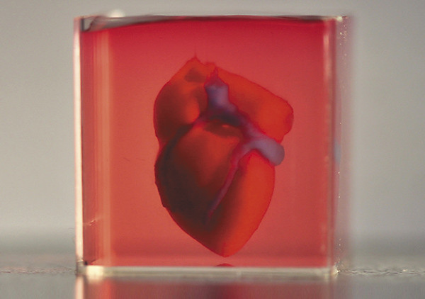 Ученые Тель-Авивского университета впервые в мире «распечатали» объемное сердце с кровеносными сосудами, желудочками и камерами из клеток и биоматериалов пациента. До сих пор таким способом удавалось получить лишь простые ткани без сосудов. Сердце получилось небольшое, размером с кроличье, но ученые уверены, что тем же способом можно будет создать и человеческое. Для исследования у пациентов брали биопсию жировой ткани, отделяя клеточную и бесклеточную части. Клетки перепрограммировали в плюрипотентные стволовые, а внеклеточный матрикс переработали в гидрогель, который играл роль «чернил» при печати. Биосовместимость — важнейшее качество будущих искусственно созданных трансплантатов, позволяющее исключить риск отторжения. По словам исследователей, им удалось вырастить сердечную ткань, которая полностью соответствовала иммунологическим, клеточным, биохимическим и анатомическим характеристикам пациента.